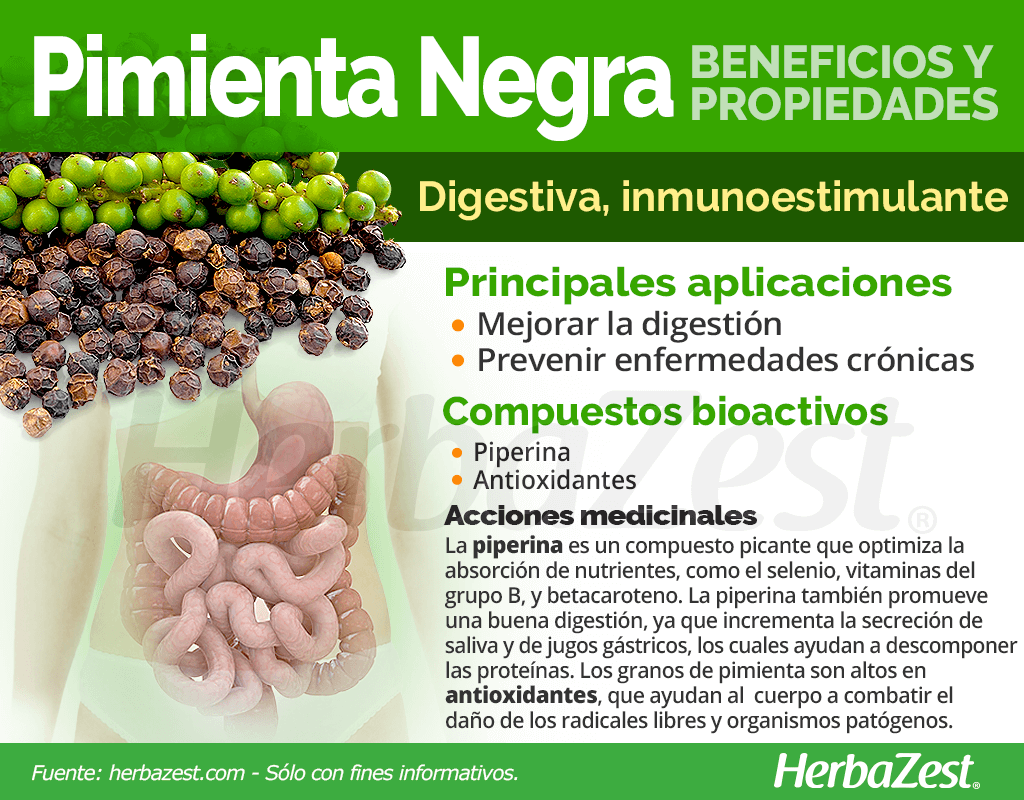 - La piperina, un componente vegetal que se encuentra en la pimienta negra, tiene un alto contenido de antioxidantes.