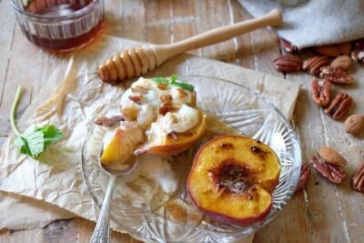 Melocotón asado y queso gouda a la parrilla ¡Póngase elegante con su…