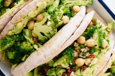 leer mas...Sándwiches de pita con brócoli, garbanzos y aguacate y limón