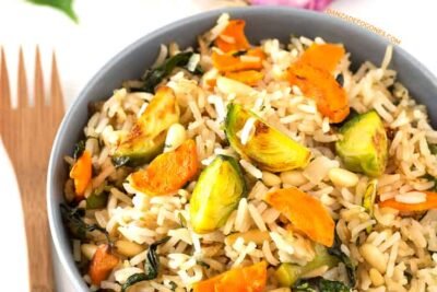 Deliciosa receta de coles de Bruselas con arroz con coco, con albahaca…