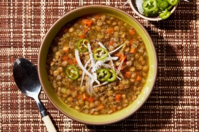 Esta sencilla receta de sopa de lentejas vegana se prepara rápidamente con…